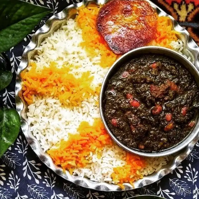 Braised beef, dried lime, fenugreek, parsley, chives, cilantro, spinach, saffron rice