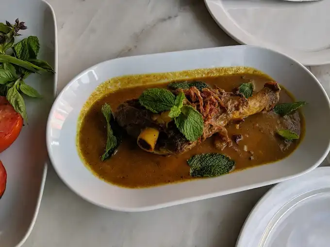 Braised beef, dried lime, fenugreek, parsley, chives, cilantro, spinach, saffron rice